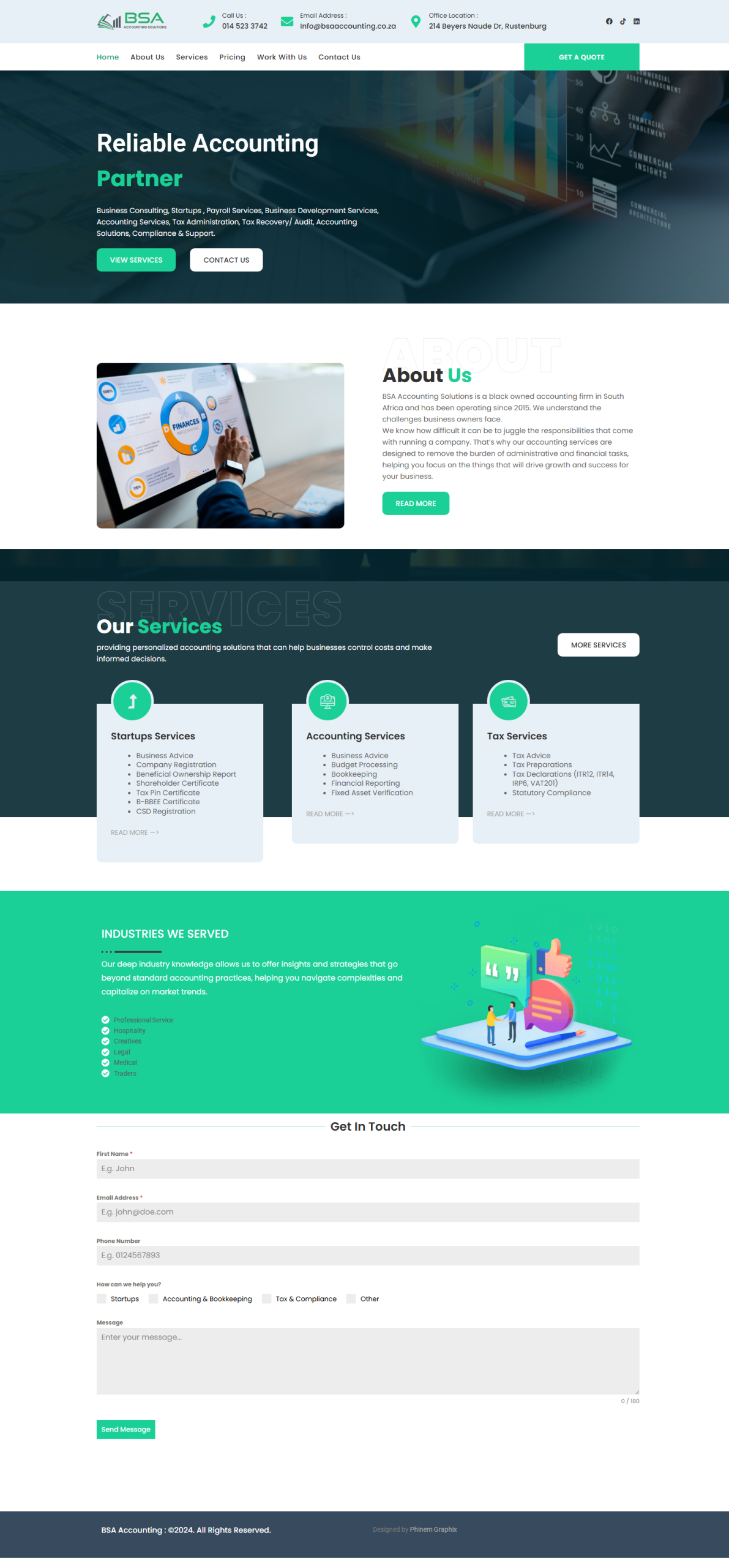Posted on Tshegofatso NnaneTrustindex verifies that the original source of the review is Google. Best service providersPosted on Evangelist Jeffrey MbulaheniTrustindex verifies that the original source of the review is Google. Highly recommend these guys... Very professional Reliable Extremely neat Trustworthy Super amazing work ????????Posted on Azaria CollenTrustindex verifies that the original source of the review is Google. Posted on MJ Magoai Physiotherapy PracticeTrustindex verifies that the original source of the review is Google. Quality at its best, once you receive their service, you would want to go back for more. We are happy with their work, you get serviced on time, they strive to bring your vision to life. It's great to work with like minded people, it's all about quality and service delivery????.Posted on Skha MankoTrustindex verifies that the original source of the review is Google. PHINE GRAPHIX WON MY TRUST???? Their service is excellent and silently, My website is working good, No complaint at all, I'm looking forward to go for their other services. THE GUYS ARE SO FRIENDLY AND OPEN FOR ANY INFO GOOD CUSTOMER SERVICEPosted on Olivia MereTrustindex verifies that the original source of the review is Google. They are so professional and the service is to die for, they give attention to details and Make sure that their clients are happy with their service and products, more importantly they listen to you as a client and they deliver, thank you Phinem Graphix you guys are the bestPosted on Marina MaraisTrustindex verifies that the original source of the review is Google. Friendly staff and quick responses. Their work doesn't disappoint.Posted on Precious Tlale MahlanguTrustindex verifies that the original source of the review is Google. Thank you for the great work...I love it!???? Keep up the good work ????????Posted on Lesego MontshoTrustindex verifies that the original source of the review is Google. It was quite a pleasure working with the team. Their service is unmatched. Such creative geniuses, and so patient and polite in their interaction...I'm satisfied and so happy with my product. They absolutely delivered on the "Woow Factor" i was looking for in my brief...i look forward to working with them again in the future. Thank you so much Phinem Graphix ????????Posted on R BothaTrustindex verifies that the original source of the review is Google. Thank you Phinem graphix, I love your work. Very good respond time (unlike other designing companies in Rustenburg)